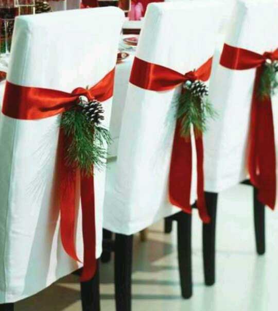 Συμπηλώστε τη διακόσμηση επιλέγοντας τα χριστουγεννιάτικα φωτάκια που σας αρέσουν για το τραπέζι ή τον μπουφέ, και διακοσμώντας τις καρέκλες του τραπεζιού.