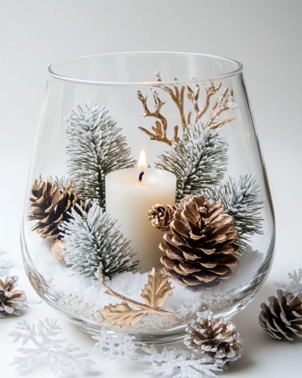 Οι γιορτές σημαίνουν λάμψη! Επιλέξτε μια σύνθεση που να λάμπει, διακοσμήστε τα κουκουνάρια με χρυσόσκονη, χρυσοσκονίστε τις γωνιές του σπιτιού…. ότι και να επιλέξετε θα είναι τέλειο! Τολμήστε το!